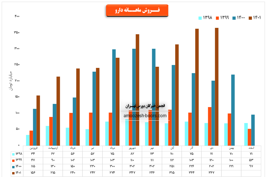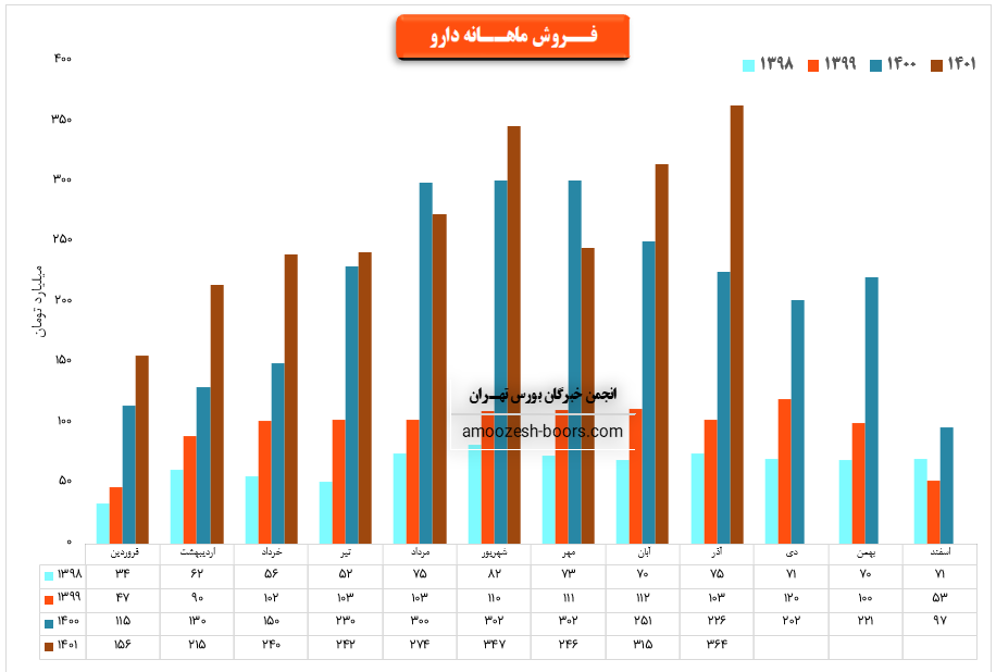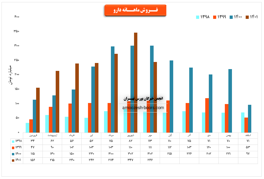 فروش نماد دارو: 1475 میلیارد تومان که نسبت به دوره مشابه گذشته 20% افزایش یافته است.