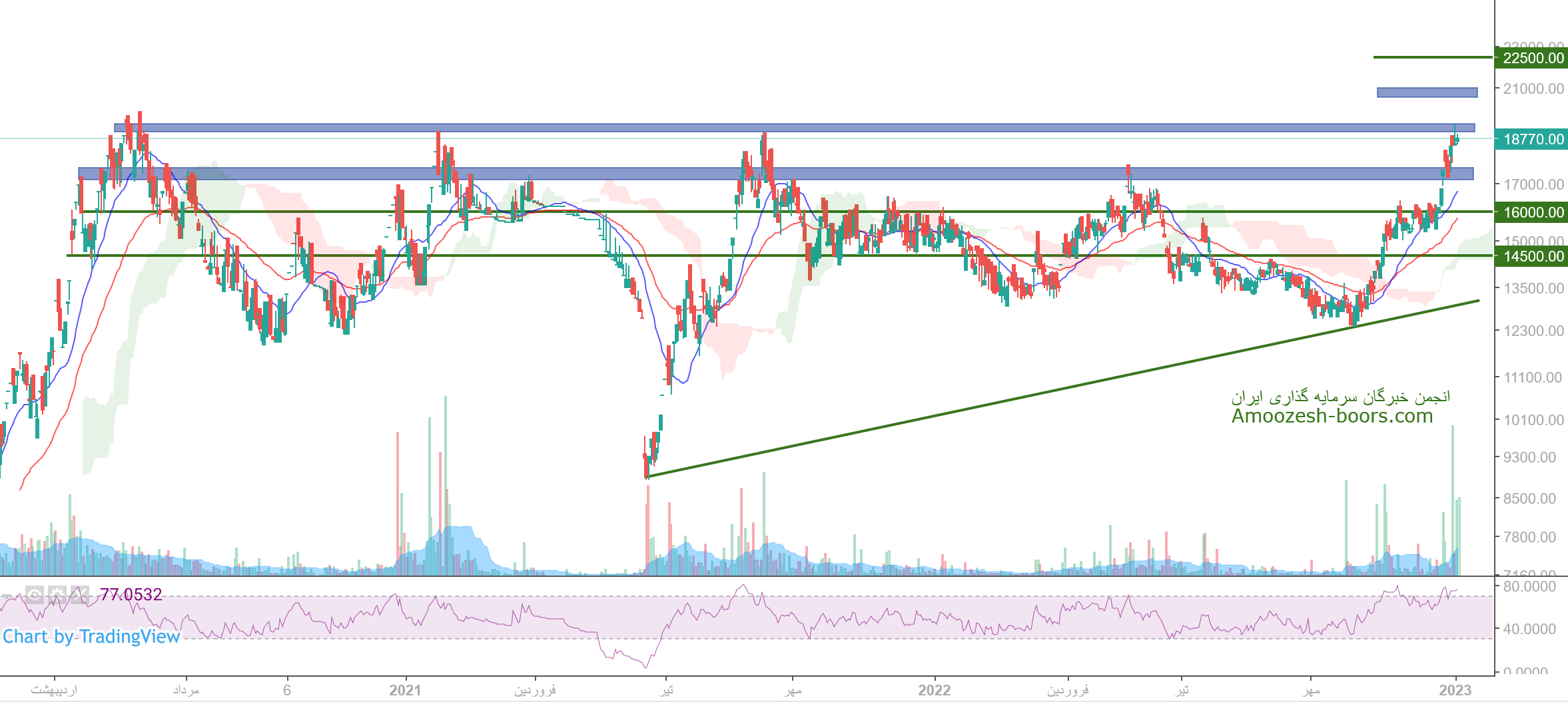 نماد دارو در گیر مقاومت 19000 ریال میباشد، در صورتی که سهم دارو وارد فاز اصلاحی شود، حمایت های سهم 17500 و 16000 ریال در نظر گرفته خواهد شد که ورود پله ای در محدوده حمایتی 17500 ریال منطقی میباشد، همچنین در صورت عبور قیمت از این مقاومت، حرکت سهم تا 20500 و 22500 محتمل خواهد بود.