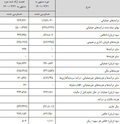 سود ناخالـص: 288 میلیارد تومان که نسبت به دوره مشابه گذشته 93% افزایش یافته است.