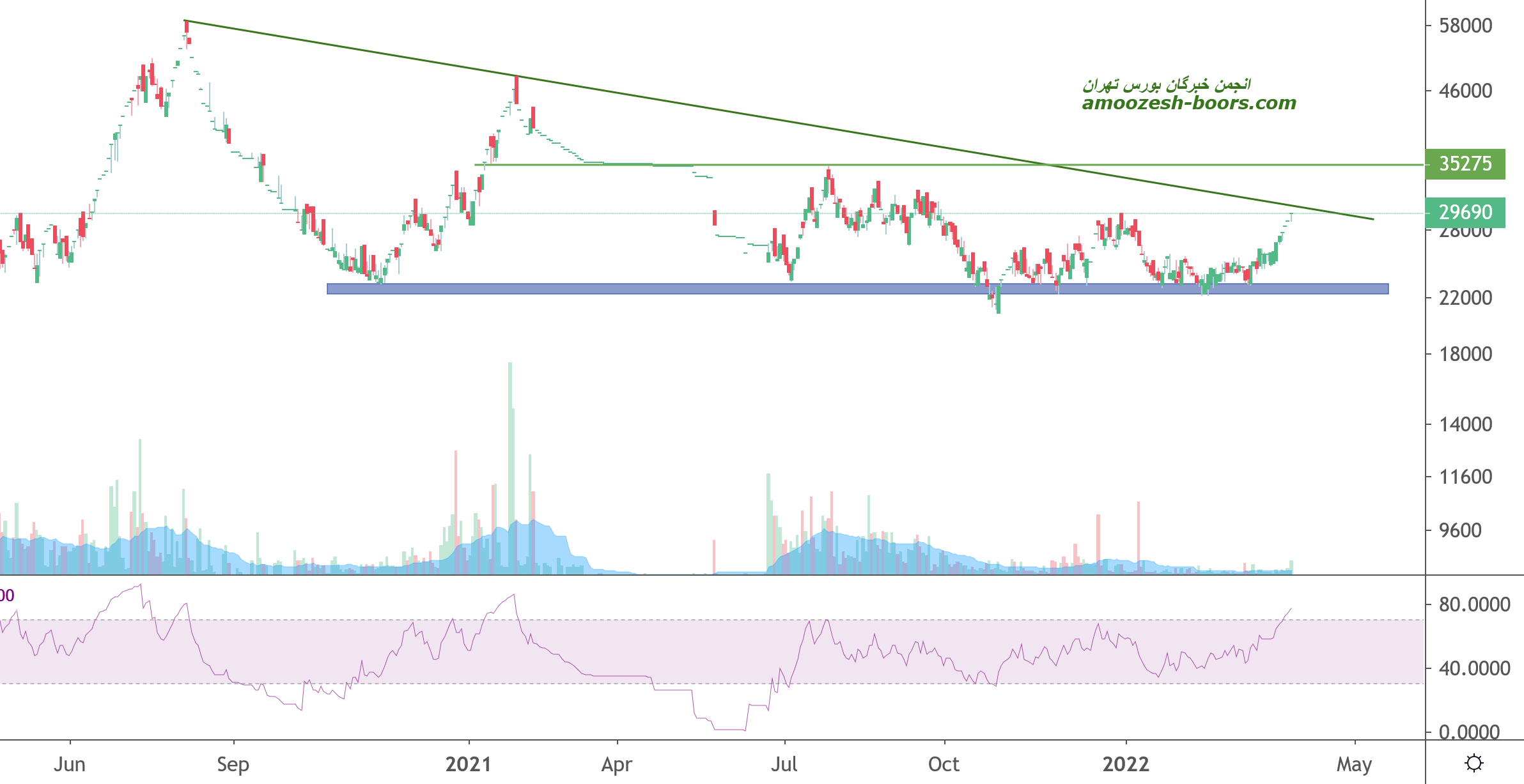 اما درصورت عدم حمایت و تمایل قیمت به ریزش بیشتر قیمت میتواند تا محدوده 200 تومان نیز که ترکیب چند حمایت مهم میباشد، اصلاح خود را ادامه دهد