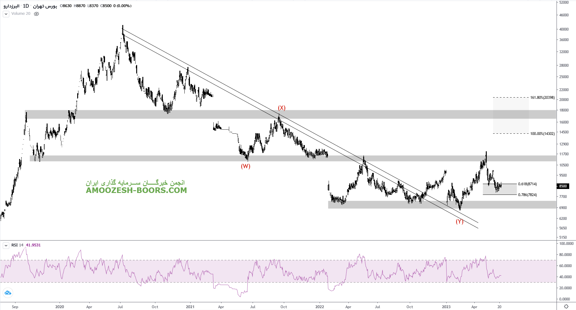 قیمت نماد دالبر در حال نوسان روی محدوده حمایتی 8000 ریال میباشد، در صورت تثبیت قیمت در این محدوده، تارگت دالبر 12000 ریال خواهد بود، همچنین در صورت از دست رفتن این محدوده حمایتی، حمایت بعدی سهم دالبر 6500 ریال در نظر گرفته خواهد شد.