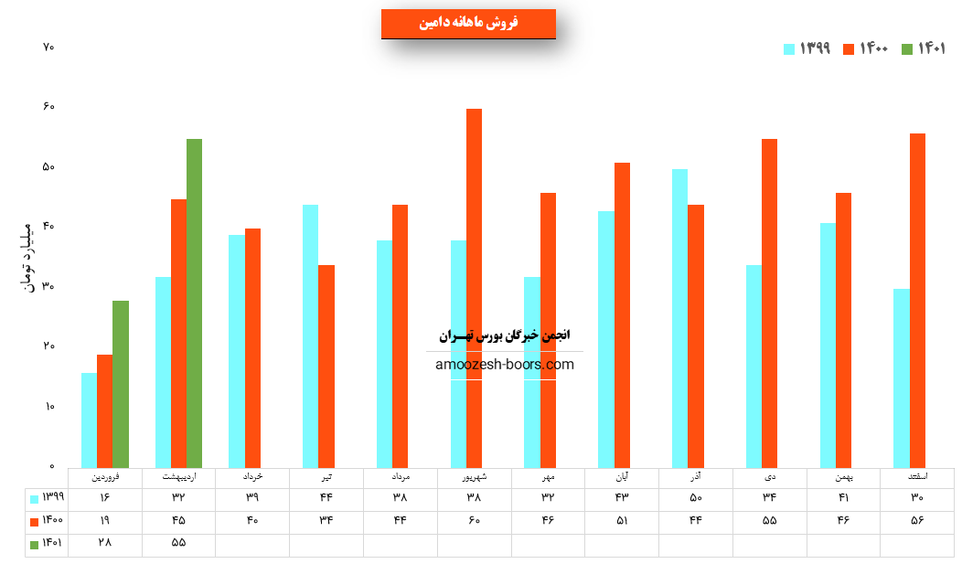 سهم دامین در اردیبهشت ماه ۱۴۰1 حدود مبلغ 55 میلیارد تومان درآمد داشته که این میزان در مقایسه با ماه گذشته 96% و همچنین در مقایسه با مدت مشابه سال گذشته 22% رشد درآمد پیدا کرده است.