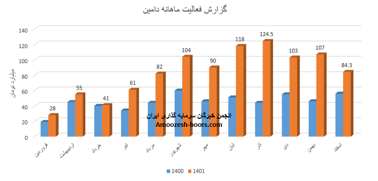 ضمنا سهم دامین حدود مبلغ 8 میلیارد تومان از محل ارائه خدمات درامد داشته است. که در مقایسه با ماه گذشته حدود 11% کاهش پیدا کرده است.