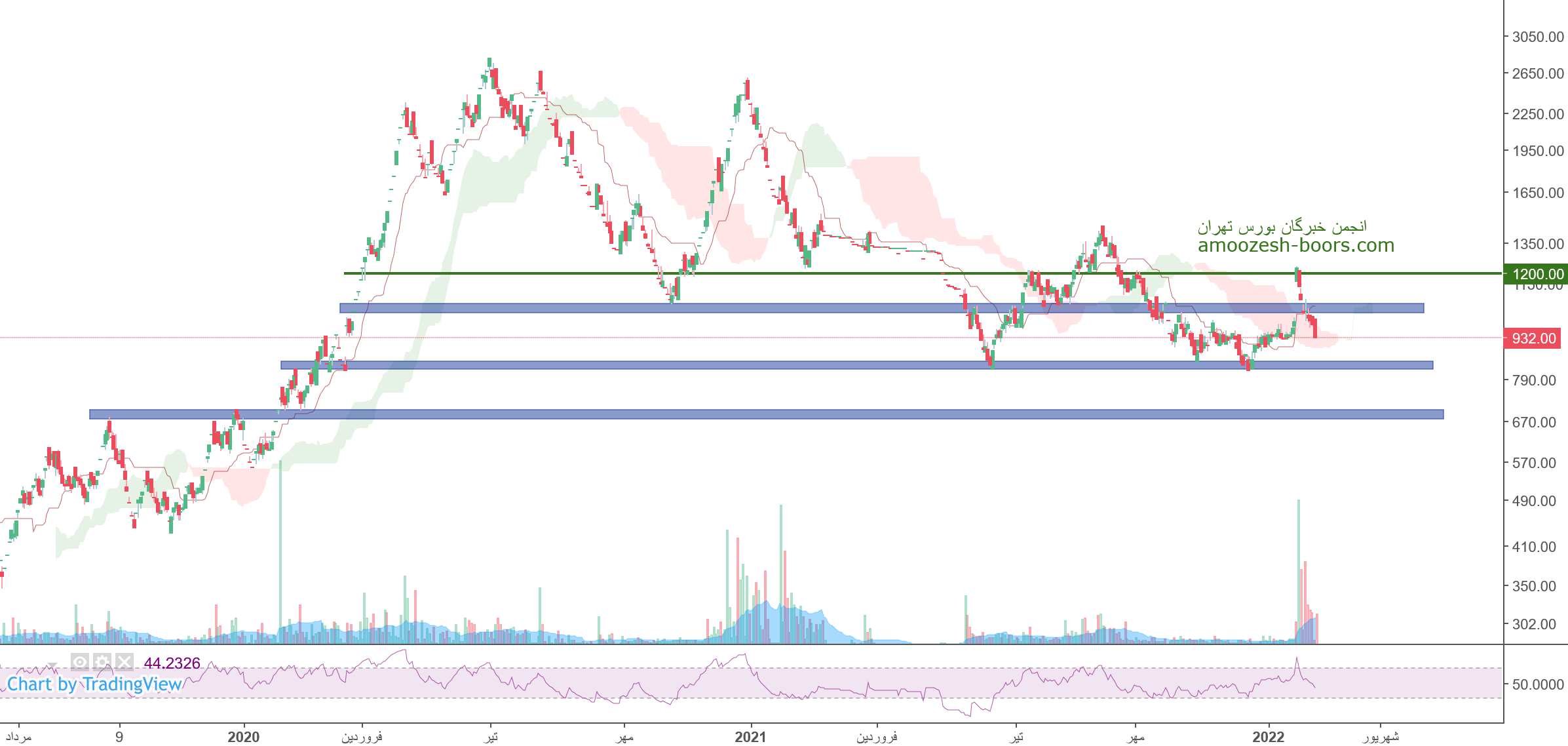 سهم دانا (بیمه دانا) در حال حاضر حمایت 932 ریال را دارا میباشد، در صورت تثبیت قیمت حرکت سهم دانا تا 1100 ریال دورا از ذهن نخواهد بود، همچنین در صورت از دست رفتن این حمایت، حمایت بعدی نماد دانا 800 ریال در نظر گرفته خواهد شد که در این صورت حد ضرر فعال میگردد.