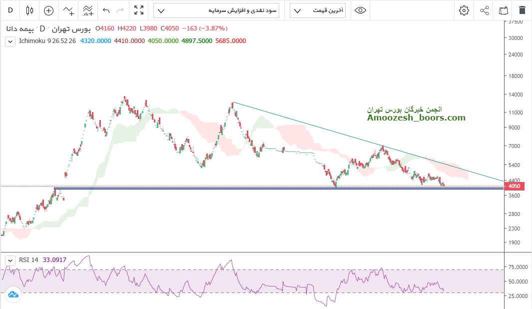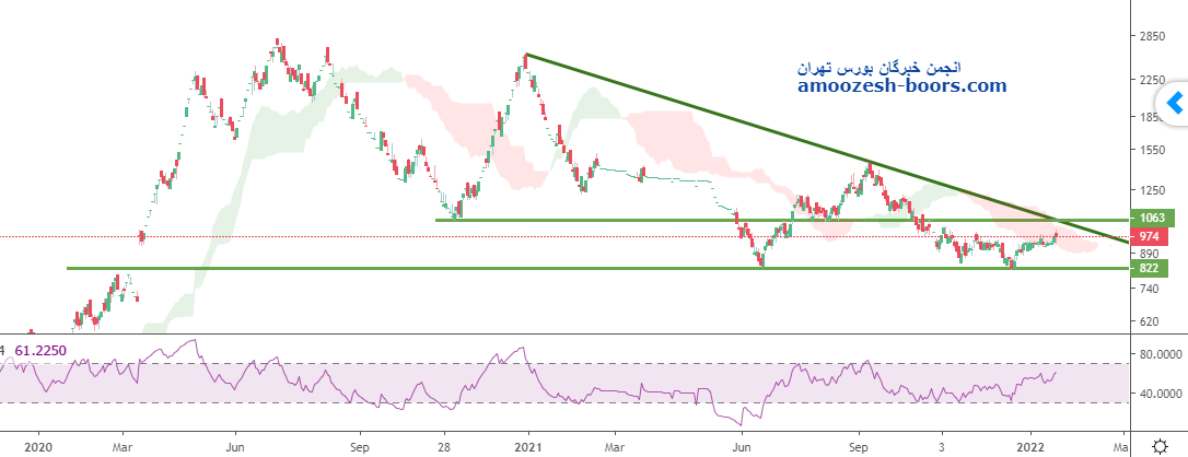 قیمت با ایجاد واگرایی مثبت در محدوده پی آر زد از تلاقی حمایت استایک و دره قیمتی قبلی و عدد رند 4000 واقع شده و محتمل درین منطقه تثبیت گردد که درین صورت مقاومت 4900 بر سر راه سهم بوده و حد ضرر با از دست رفتن حمایت 3900 فعال خواهد شد .