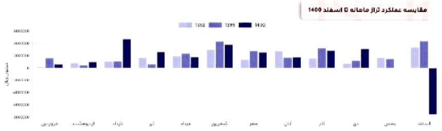 تراز شرکت در این دوره نسبت به ماه قبل 32% کاهش و نسبت به میانگین ماه های قبل 29% کاهش داشته است.