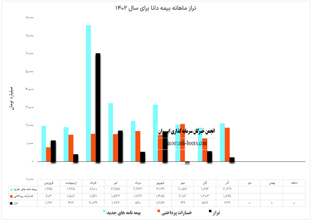 بیشترین حق بیمه اعطایی نماد دانا در آذر ماه: