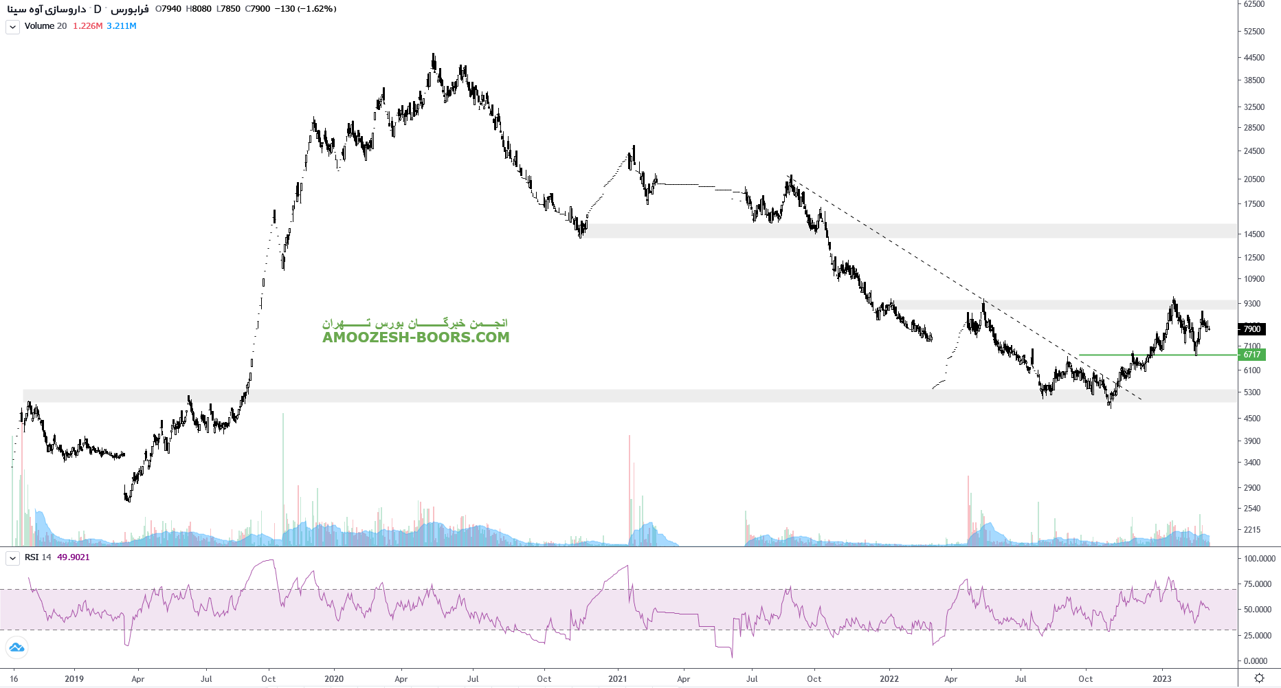سهم داوه با قرارگیری بر روی حمایت خط روند صعودی با شکست مقاومت ناحیه ۱۱۰۰۰ ریال پتانسیل تداوم حرکت صعودی خود را تا مقاومتهای نواحی ۱۴۵۰۰ ریال و 19000 ریال را در میان مدت دارد. همچنین در صورت برگشت سهم، نزدیکترین حمایت سهم داوه ناحیه ۶۶۰۰ ریال در نظر گرفته خواهد شد.