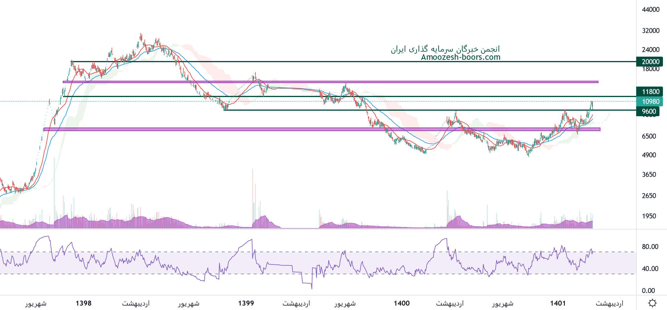 نماد داوه در حال حاضر در محدوده کم ریسک 9600 ریال قرار دارد، در صورت تثبیت قیمت، حرکت سهم داوه تا 11800 ریال و بعد از آن تا 14000 ریال محتمل خواهد بود، همچنین در صورت از دست رفتن این محدوده اولین حمایت 7000 ریال در نظر گرفته خواهد شد.