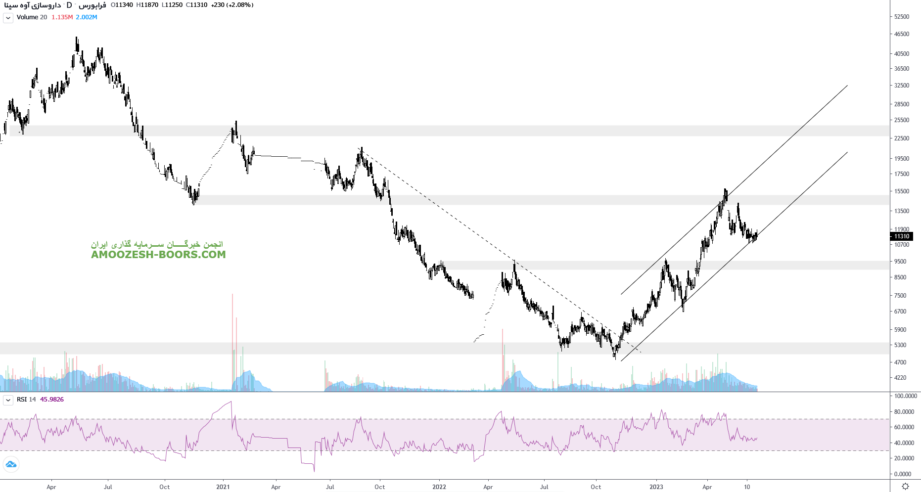 قیمت سهم داوه در قالب یک کانال صعودی در حال حرکت می باشد لذا در صورت حفظ ناحیه کف کانال یعنی ناحیه ۱۱۰۰ تومان می تواند مجدداً مقاومت ناحیه ۱۵۰۰ تومان را تست کرده تا با شکست آن رشد خود را تا مقاومت ناحیه ۲۵۰۰ تومان نیز ادامه دهد اما در صورت از دست رفتن این ناحیه، حمایت بعدی سهام داوه محدوده ۹۲۰ تومان در نظر گرفته خواهد شد.