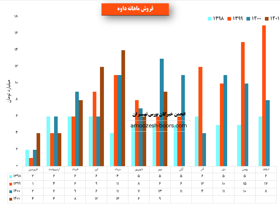 فروش سهم داوه: 50 میلیارد تومان که نسبت به دوره مشابه گذشته 14% افزایش یافته است.