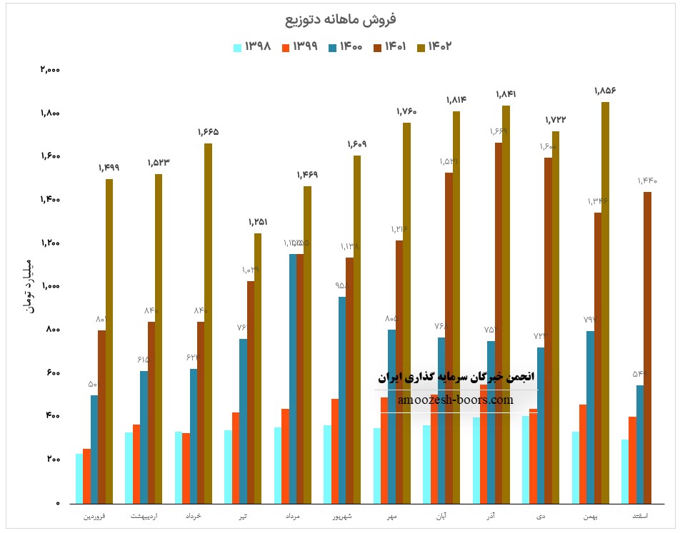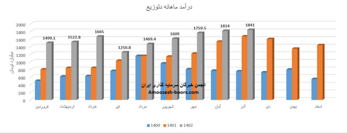 فروش آذر ماه سال 1402 سهم دتوزیع 1841 میلیارد تومان گزارش شده است ، تغییرات درآمدی دتوزیع به شرح زیر میباشد: