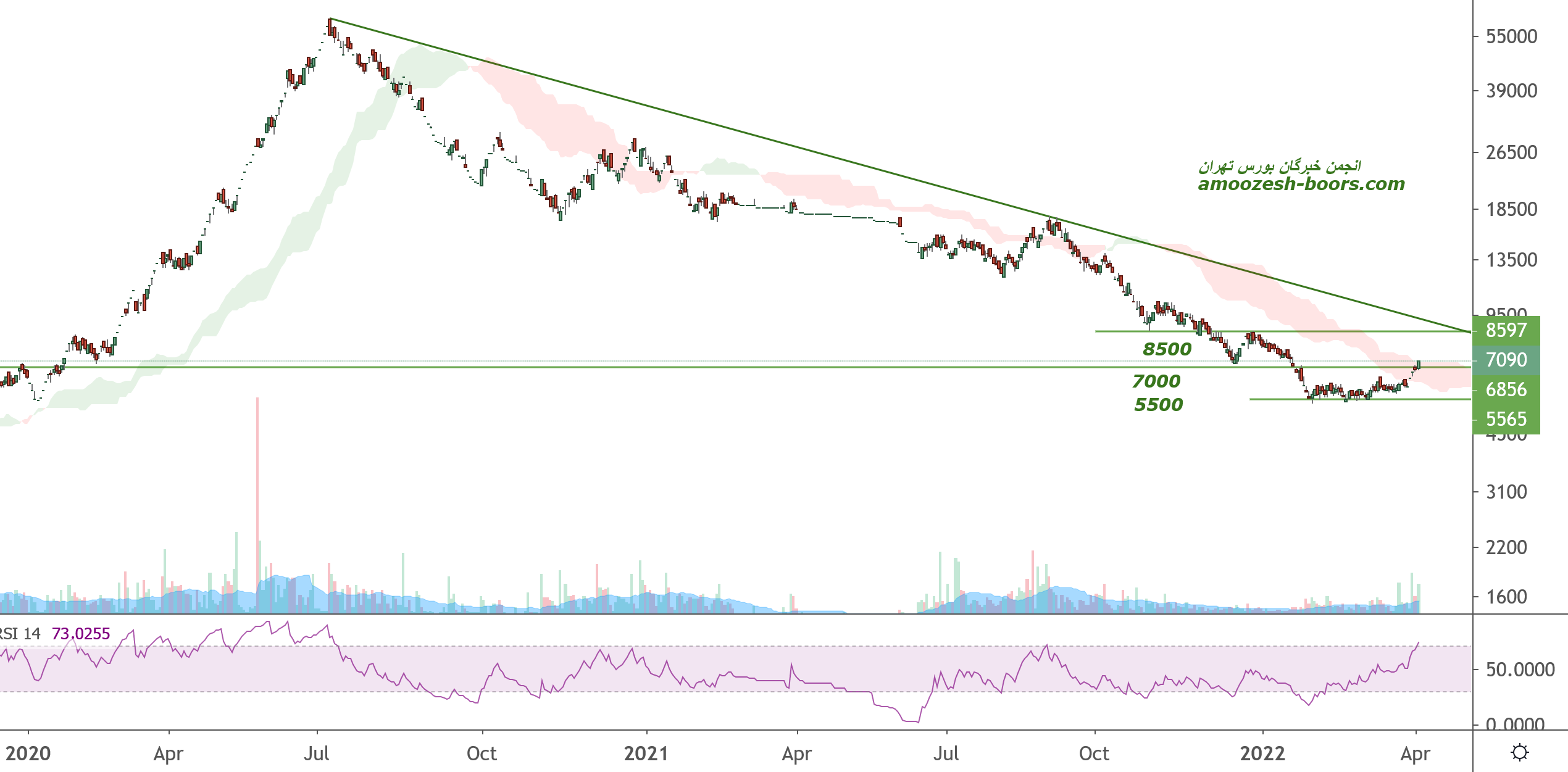 اما درصورت برگشت و شکست مقاومت مهم محدوده 700 تومان میتواند رشد خود را تا محدوده 1000 تومان نیز ادامه دهد