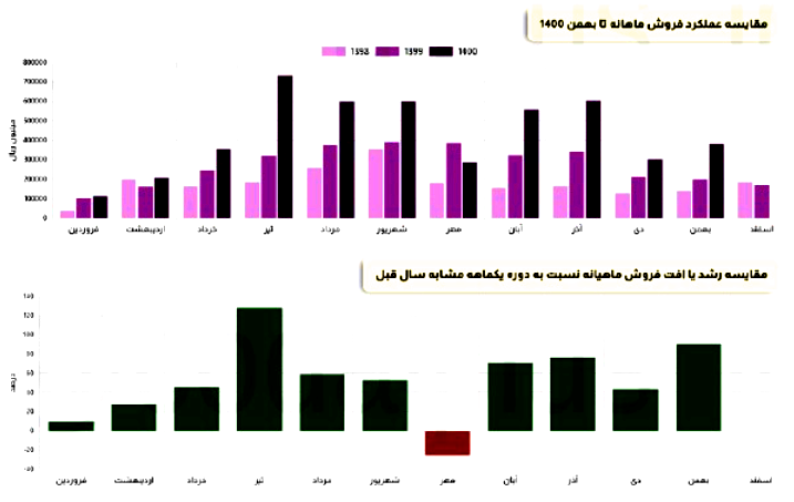 فروش نماد دجابر: 406 میلیارد تومان که نسبت به دوره مشابه گذشته 54% افزایش یافته است.
