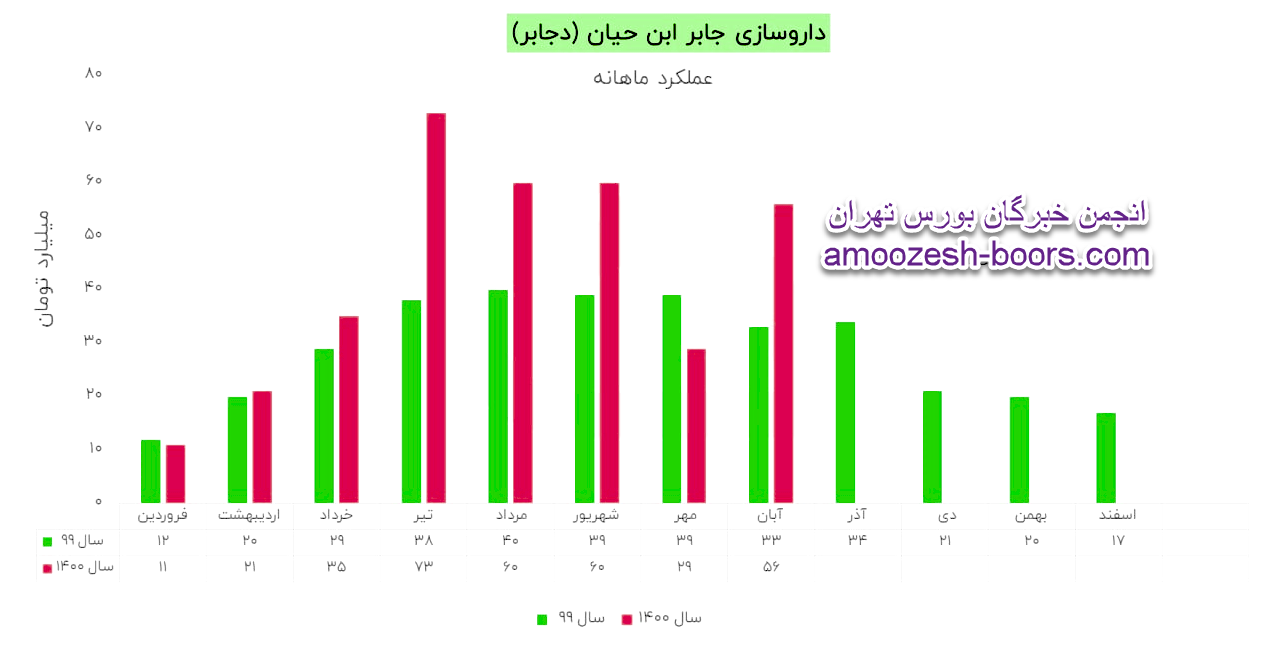 نماد دجابر نسبت به دوره 1 ماهه مشابه سال قبل 53% افزایش درآمد داشته است.
