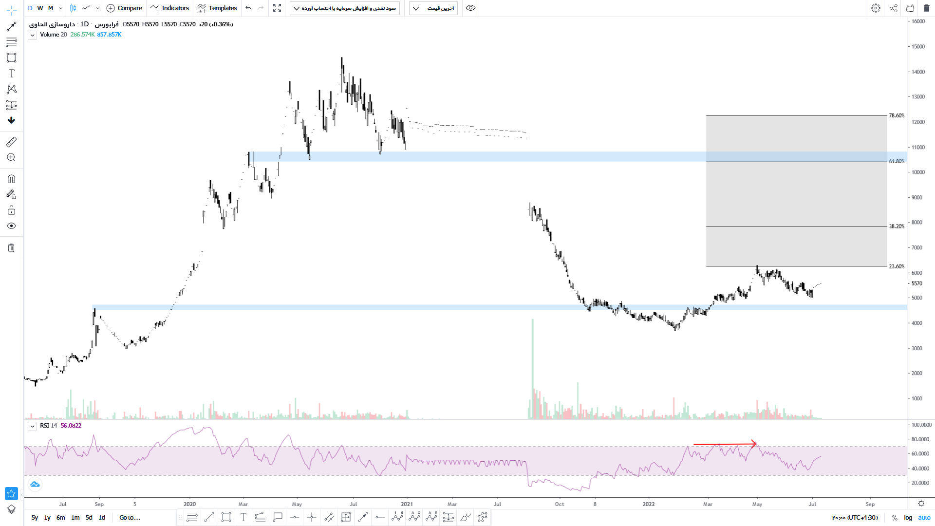 قیمت سهم دحاوی در حال حاضر در حال تکمیل پولبک و تثبیت بالای محدوده حمایت استاتیک شکسته شده است و در صورت افزایش فشار خرید تارگت سهم 6500 ریال خواهد بود و درصورت شکستن محدوده حمایتی رو به پایین و تثبیت زیر محدوده حمایت استاتیک حمایت اول سهم عدد رند و روانی 4000 ریال خواهد بود که در این صورت حد ضرر سهم فعال خواهد شد.