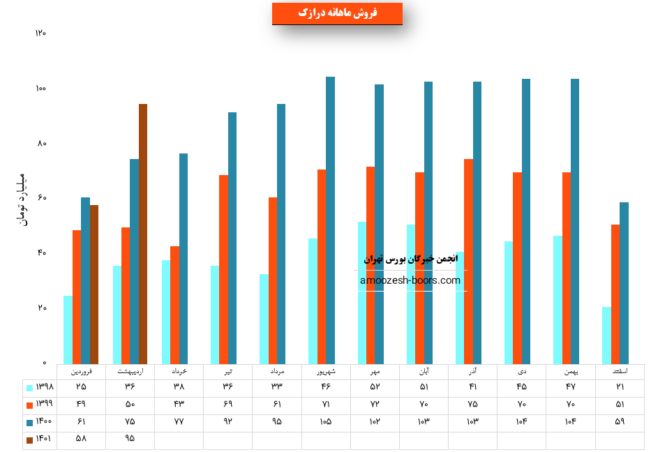 سهم درازک نسبت به دوره 1 ماهه مشابه سال قبل 29% افزایش درآمد داشته است.