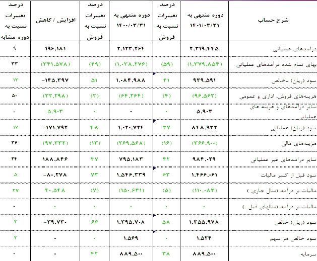 سود عملیاتی 84.9 نیز میلیارد تومان ثبت شده که 17% افت داشته است.
