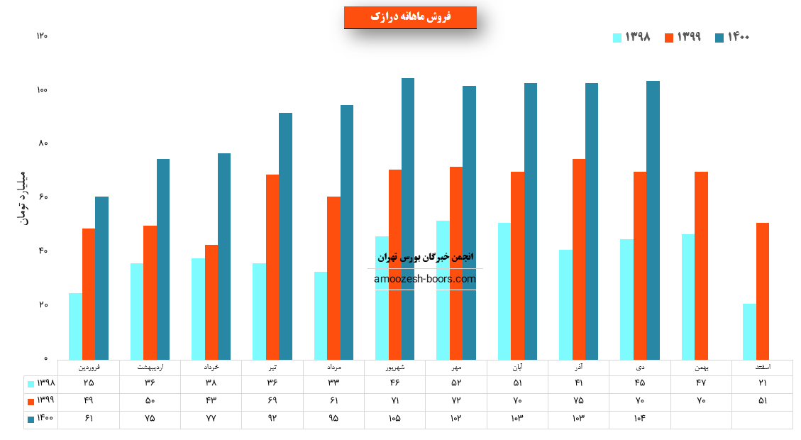 فروش سهم درازک: 800 میلیارد تومان که نسبت به دوره مشابه گذشته 42% افزایش یافته است.