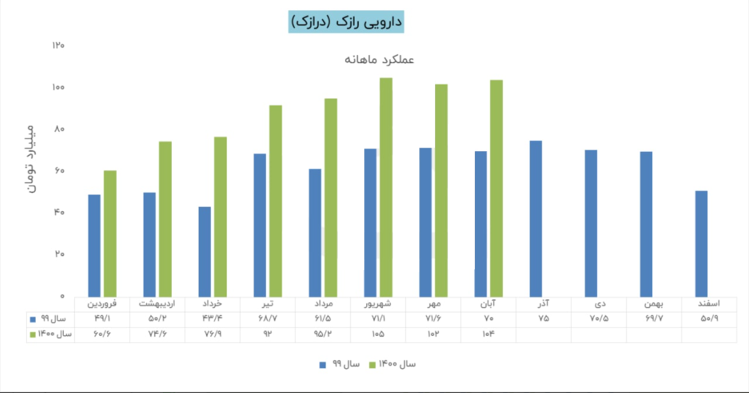 سهم درازک نسبت به دوره 1 ماهه مشابه سال قبل 48% افزایش درآمد داشته است.