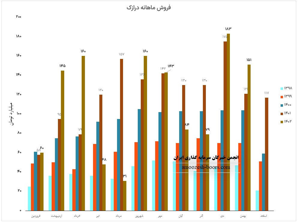 نماد درازک در اسفند ماه از طریق فروش داخلی به فروش 64.1 میلیارد تومانی دست یافت.