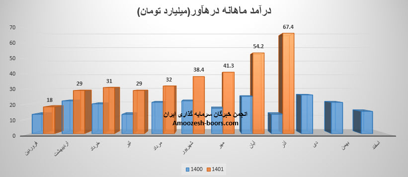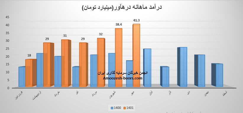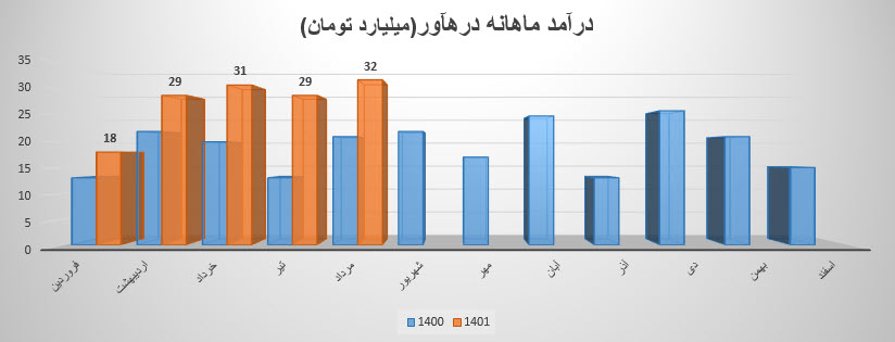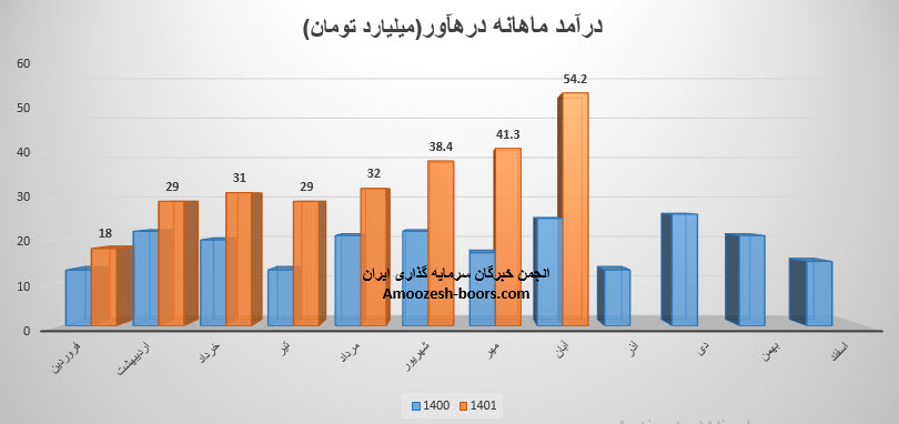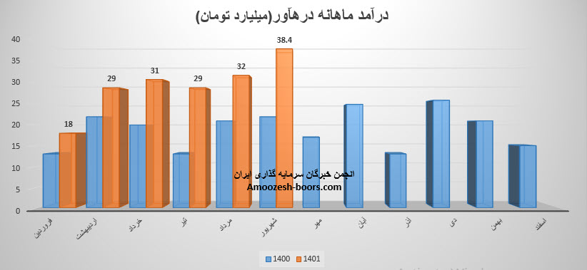 سهم درهاور درین دوره مبلغ 32 میلیارد تومان درآمد داشته است که نسبت به ماه قبل 8% افزایش و نسبت به میانگین ماه های قبل 19% افزایش داشته است.