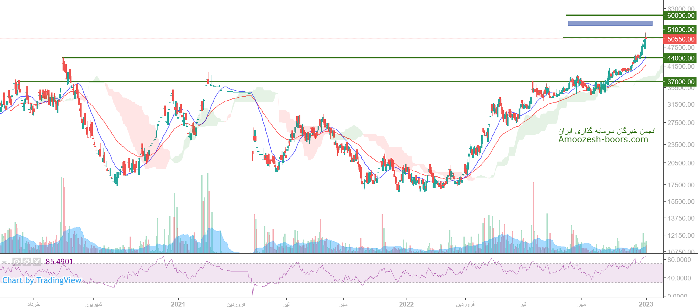 نماد درهاور درگیر محدوده مقاومتی 50000 ریال میباشد، در صورت افزایش فشار فروش و ورود قیمت به فاز اصلاحی، حمایت های سهم به ترتیب 44000 و 37000 ریال ارزیابی میگردد، همچنین در صورت عبور از این مقاومت، حرکت سهم تا محدوده های مقاومتی 55000 و 60000 ریال محتمل خواهد بود.