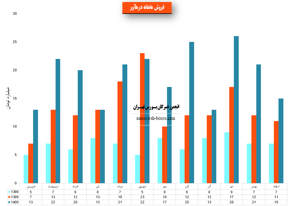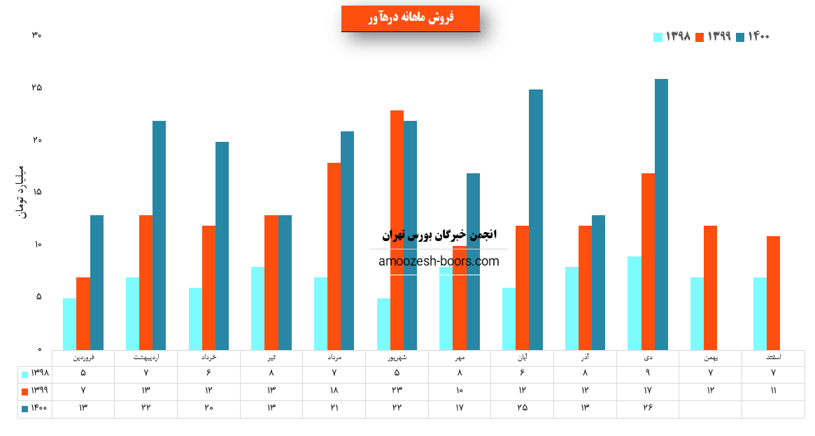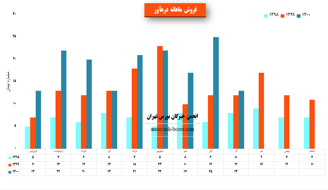 سهم درهاور در آذر1400 مبلغ 13میلیارد تومان درامد داشته که این میزان نسبت به ماه گذشته 48% افت و همچنین نسبت به مدت مشابه سال گذشته 8% رشد پیدا کرده است!