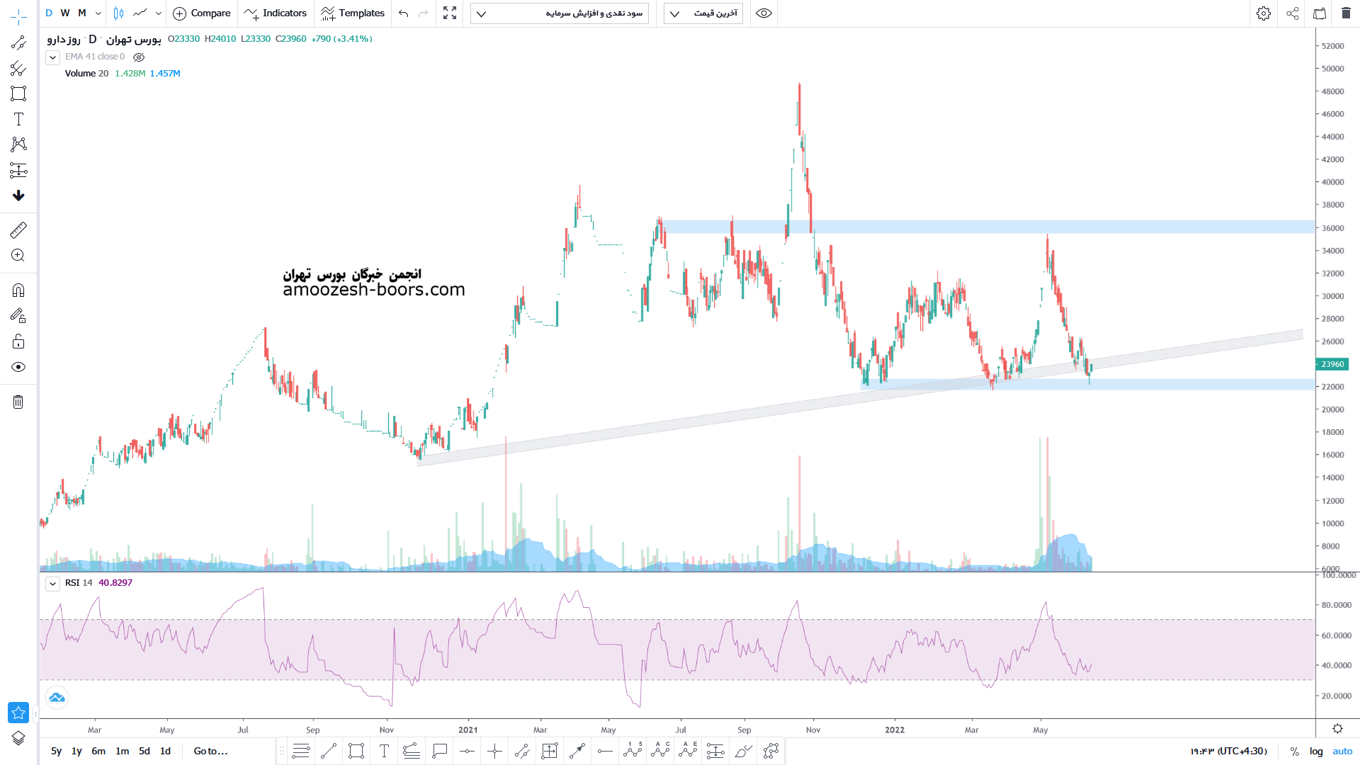 سهم دروز حمایت 19000 ریال را دارا میباشد،در صورت تثبیت قیمت،مقاومت سهم دروز 22500 ریال در نظر گرفته خواهد شد،همچنین در صورت از دست رفتن این حمایت،حمایت بعدی 16500 ریال خواهد بود که در این صورت حد ضرر فعال میگردد وسیگنال خروج سهامداران کوتاه مدتی را صادر مینماید .