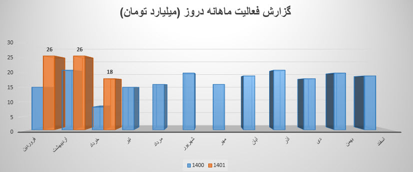 92 درصد از فروش این ماه سهم دروز مربوط میگردد به انواع قرص و دراژه که مقدار فروش این محصول 98 درصد و نرخ فروش آن 19 درصد رشد داشت .