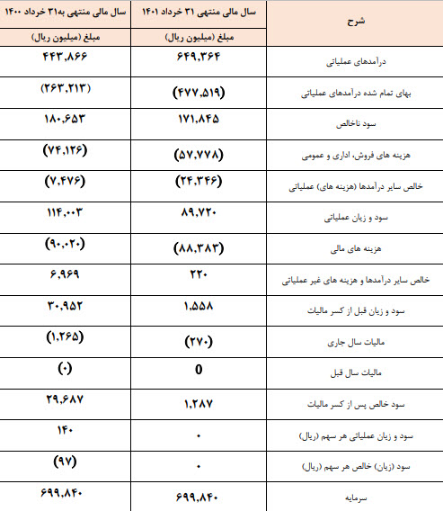 سود عملیاتی: 42 میلیارد تومان که نسبت به دوره مشابه گذشتـه 12% کاهــش یافته است.