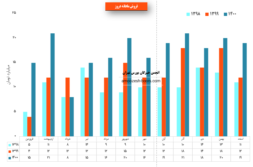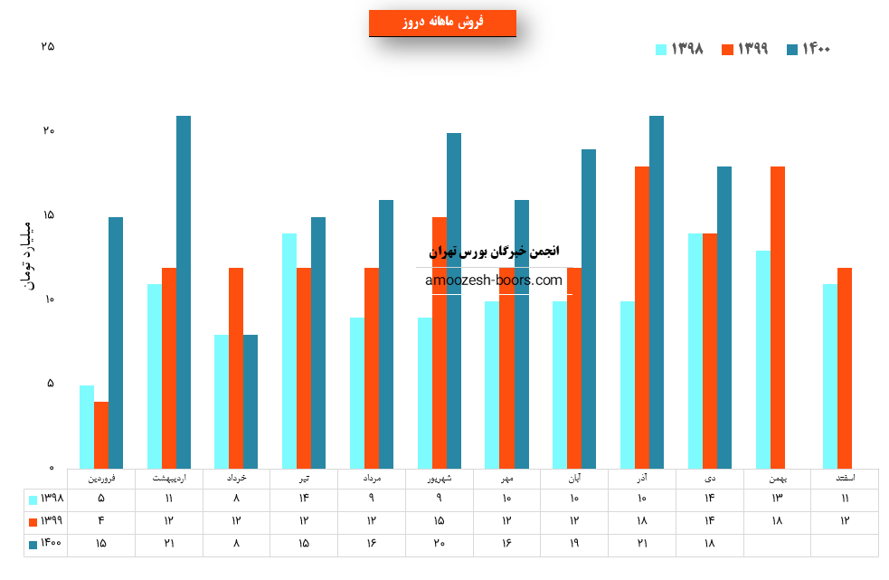 1- سهم دروز درخصوص فروش 3 ماهه آخر سال 1400 مبلغ 145 میلیارد تومان پیش بینی فروش داشته که در مقایسه با فروش محقق شده 3 ماهه سوم رشد 159 درصدی فروش پیش بینی شده است.