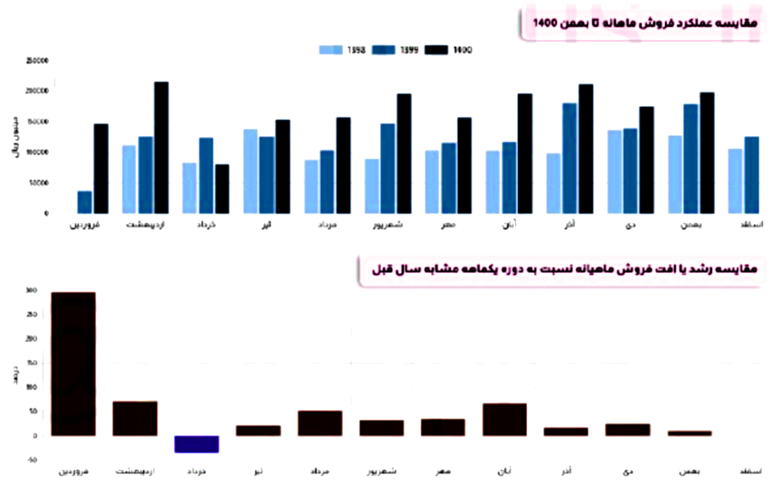 سهم دروز در فروردین ماه حدود بیش از 51 میلیون عدد از محصولات خود را به فروش رسانده که این میزان در مقایسه با حجم فروش ماه گذشته خود حدود 24% افزایش پیدا کرده است.