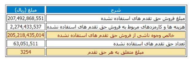 نتایح حق تقدم استفاده نشده در دزهراوی به شرح زیر میباشد .