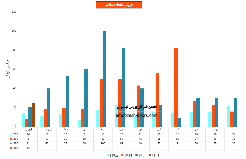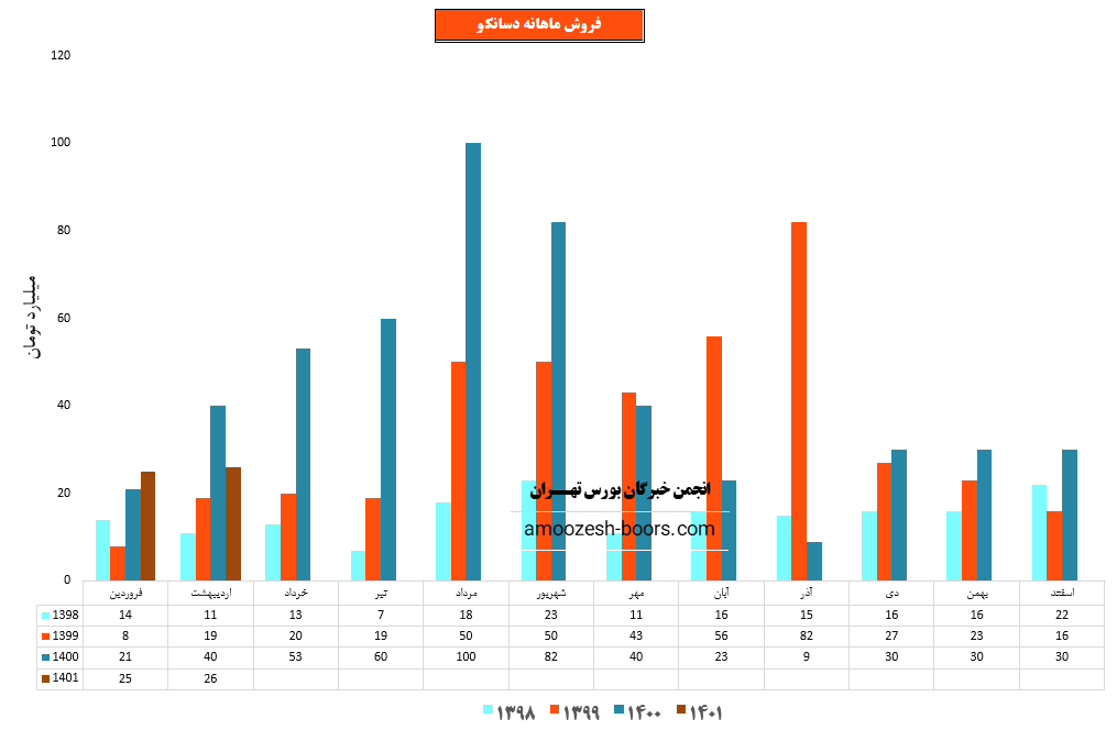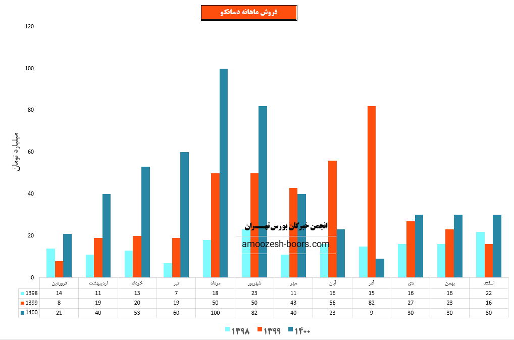 سهم دسانکو در فروردین ماه مجموعاً بیش از 818 هزار عدد از محصولات خود را به فروش رساند که این میزان در مقایسه با حجم فروش ماه گذشته حدود 424% افزایش پیدا کرده است.