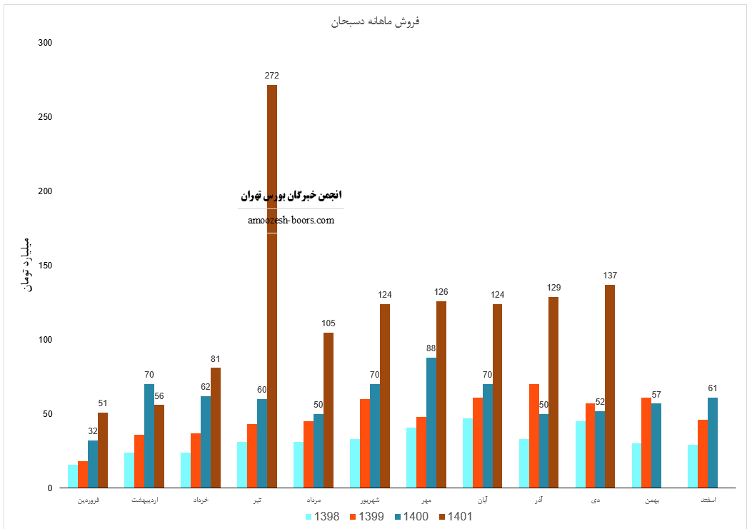 سهم دسبحان در دی ماه حدود 291500 عدد از محصولات خود را به فروش رساند که این میزان در مقایسه با حجم فروش ماه گذشته حدود 12% کاهش پیدا کرده است.