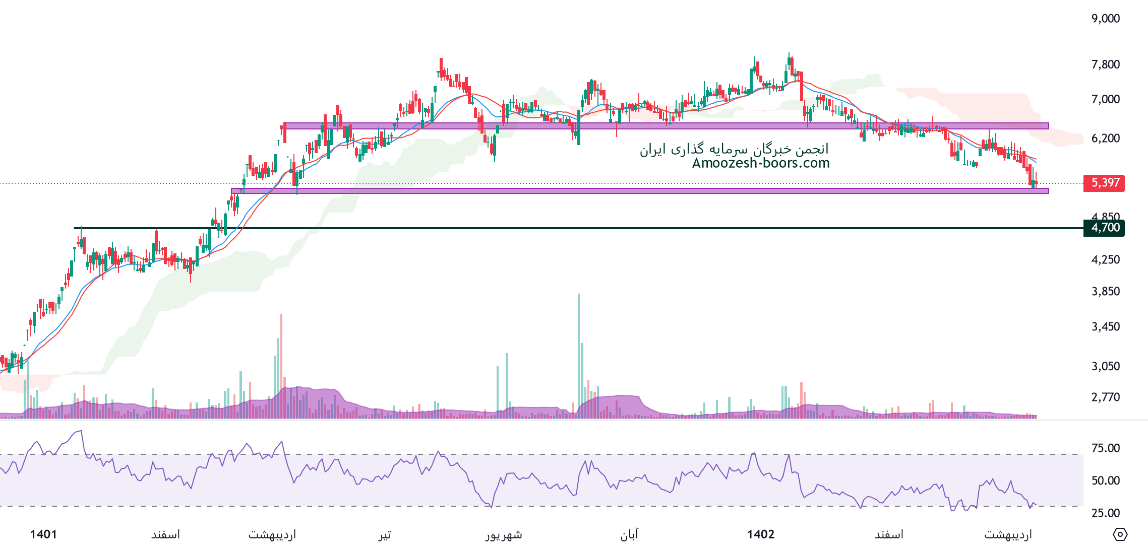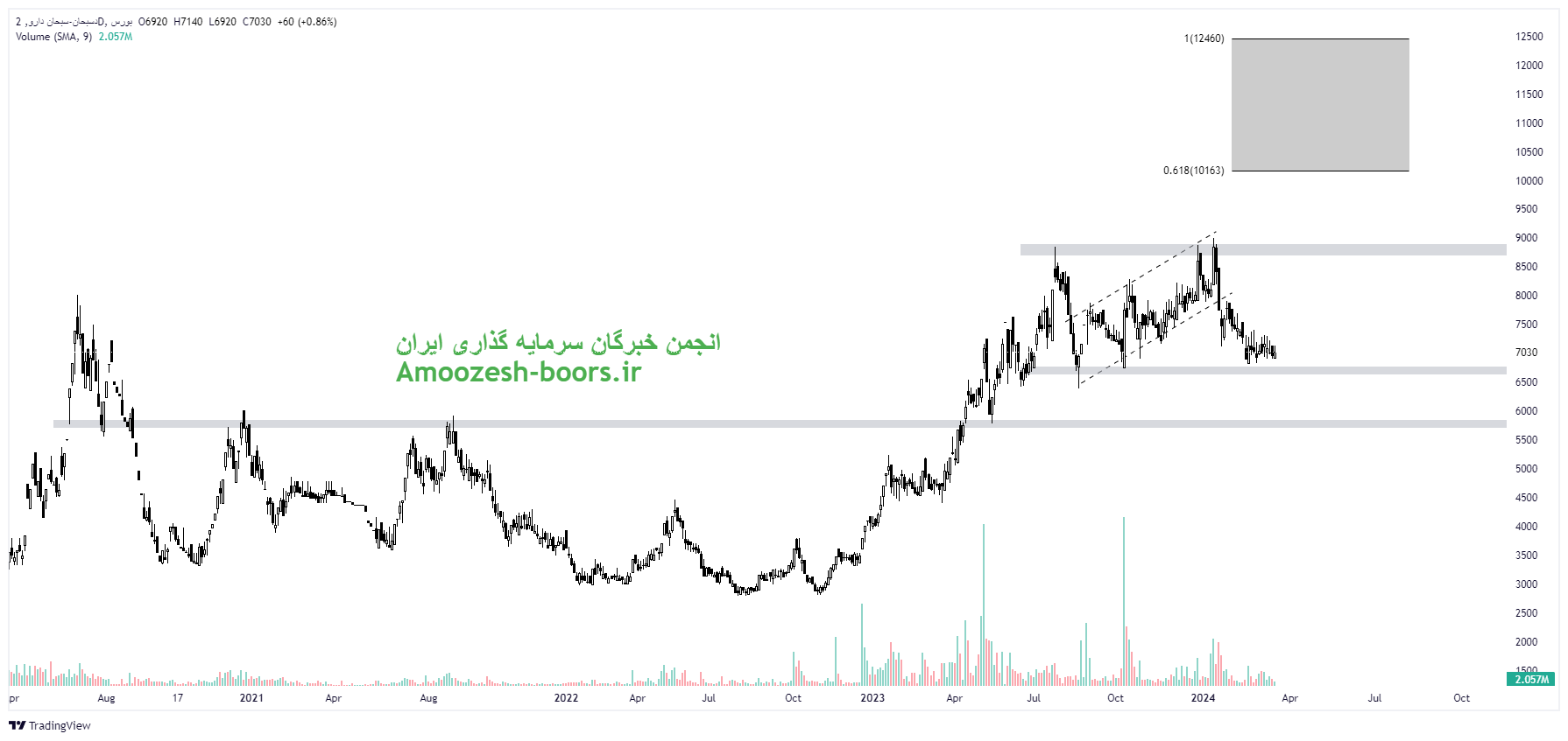 نماد دسبحان مابین محدوده حمایتی 7000 ریال و مقاومتی 8000 ریال در حال نوسان میباشد، در صورت تثبیت در محدوده حمایتی و عبور پر قدرت از محدوده مقاومتی، سهم دسبحان تا تارگت 12000 ریال مقاومت 9000 ریال را پیش رو خواهد داشت، همچنین در صورت از دست رفتن اسن سطح حمایتی، حمایت بعدی سهم 6000 ریال ارزیابی خواهد شد.