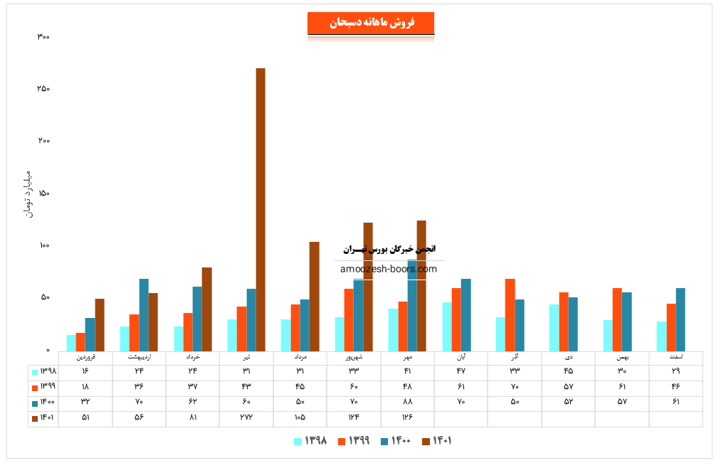همچنین سهم دسبحان با ثبت فروش 501 میلیارد تومانی در پایان 6 ماهه ابتدایی سال توانست حدود 54% از فروش سالانه خود را محقق سازد