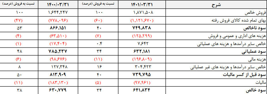 فروش سهم دسبحان: 723 میلیارد تومان که نسبت به دوره مشابه گذشته  22% افزایش   یافته است.