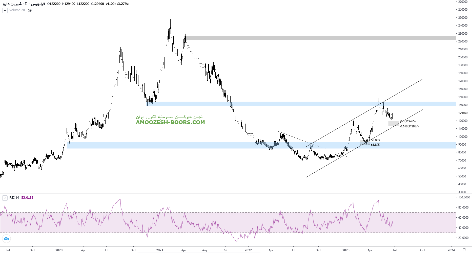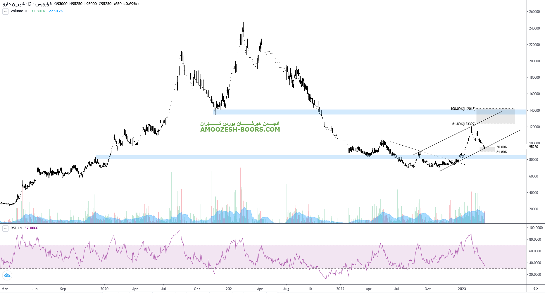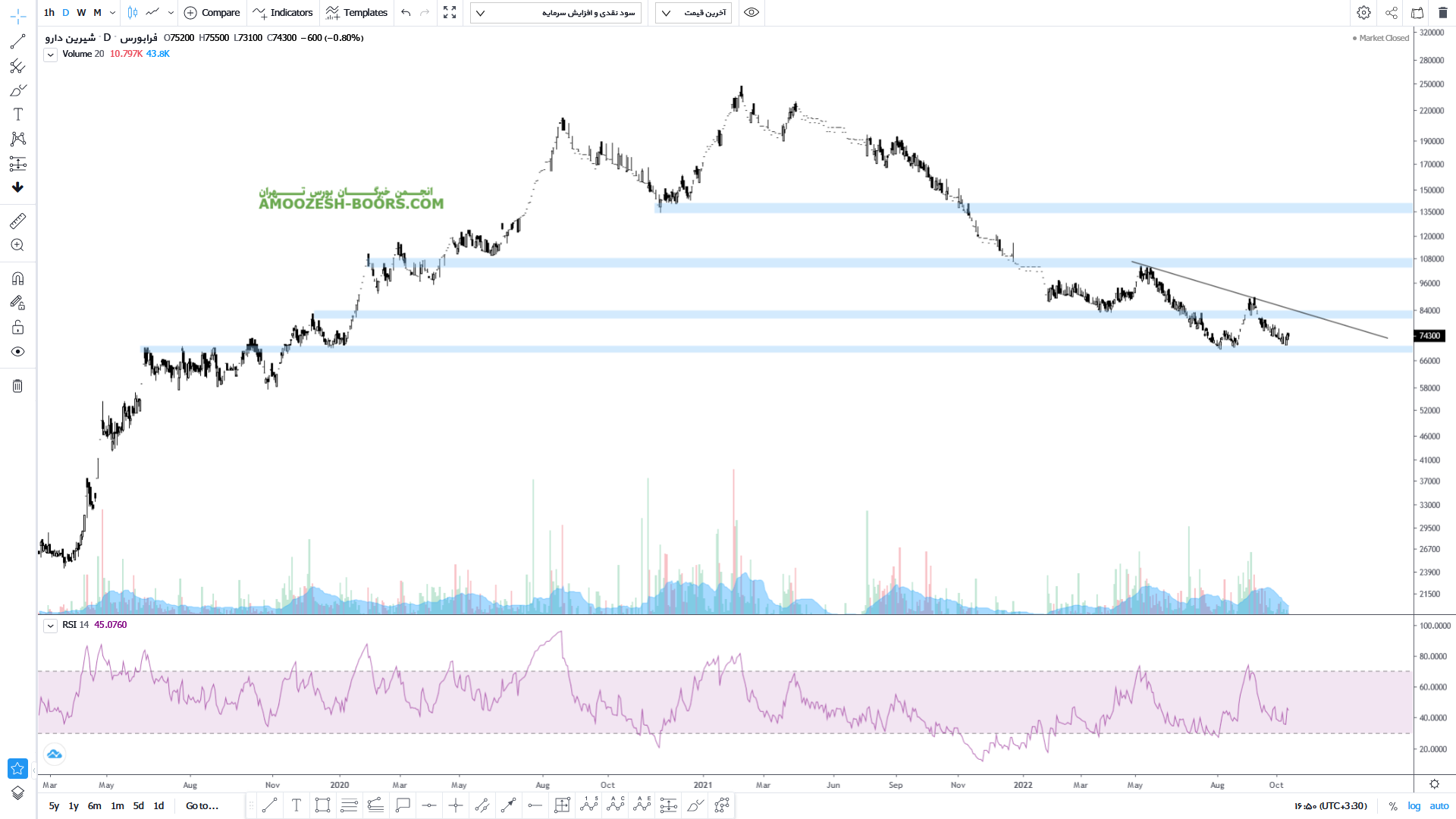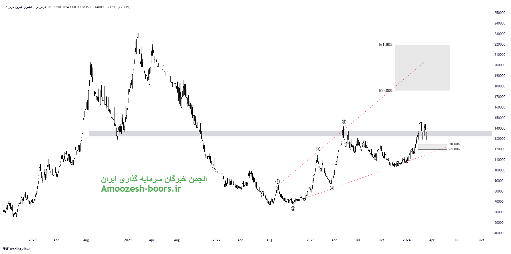 قیمت سهم دشیری پس از برخورد به ناحیه کف کانال صعودی مستعد به رشد تا ناحیه سقف کانال صعودی یعنی ناحیه 14000 تومان می باشد. همچنین در صورت از دست رفتن حمایت ناحیه کف کانال صعودی، حمایت بعدی سهم دشیری ناحیه 8200 تومان تعیین شده است.