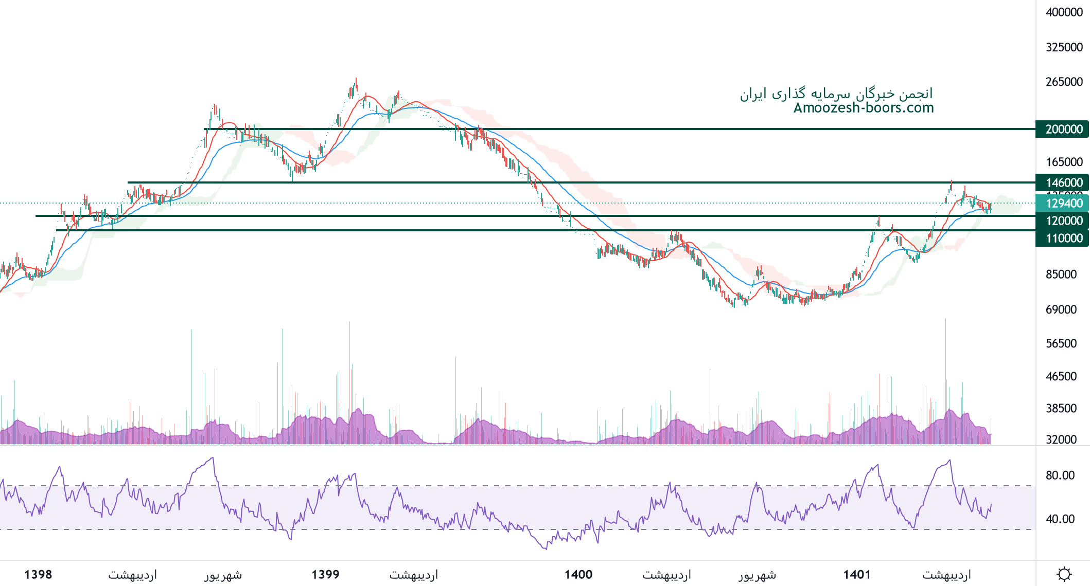 نماد دشیری در محدوده کم ریسک حمایتی 120000 ریال قرار دارد، در صورت تثبیت قیمت در این منطقه، حرکت سهم دشیری تا 146000 و 200000 ریال دور از ذهن نخواهد بود، همچنین در صورت شدن گرفتن فشار عرضه و از دست رفتن سطح حمایتی ذکر شده، حمایت بعدی سهم دشیری 110000 ریال در نظر گرفته خواهد شد.