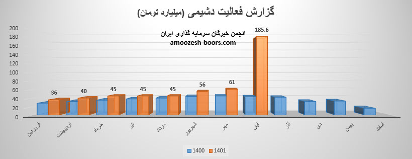 شرکت شیمی داروئی داروپخش با نماد دشیمی طی گزارش فعالیت یک ماهه منتهی به آبان 1401 به درآمد 185.6 میلیارد تومانی رسید. تغییرات درآمد ماهانه سهم دشیمی به شرح زیر است.