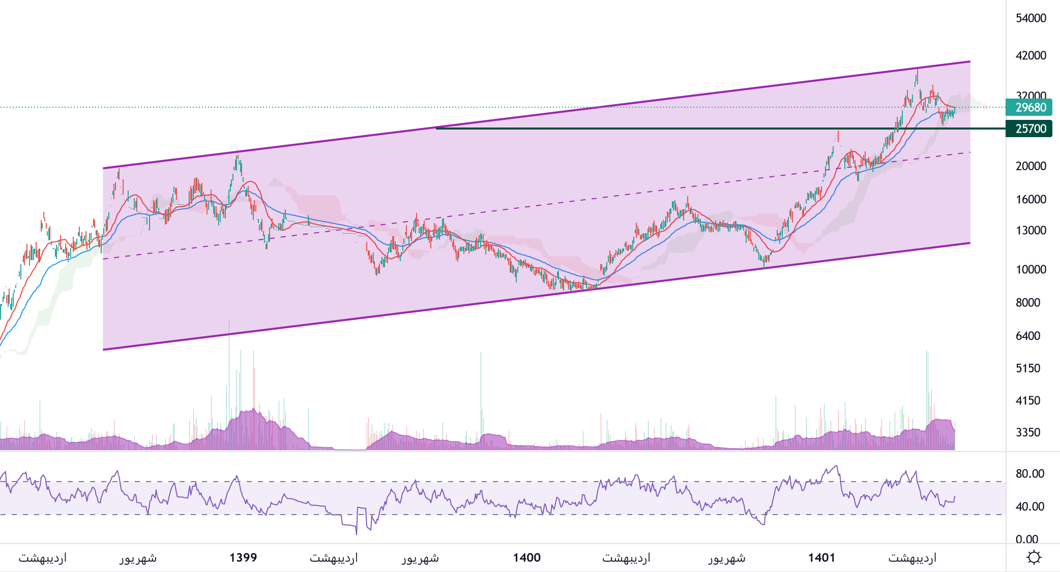 در بررسی نمودار تکنیکال سهم دشیمی، قیمت بعد از برخورد به مقاومت سقف کانال واکنش اصلاحی داشته و در محدوده قیمتی 26000 ریال تثبیت شده، تارگت دشیمی 40000 ریال در نظر گرفته خواهد شد، همچنین در صورت از دست رفتن سطح حمایتی ذکر شده، حمایت بعدی 22500 ریال خواهد بود، سهم دشیمی در حال حاضر کم ریسک میباشد، در صورت ورود به حد ضرر پایبند باشید.