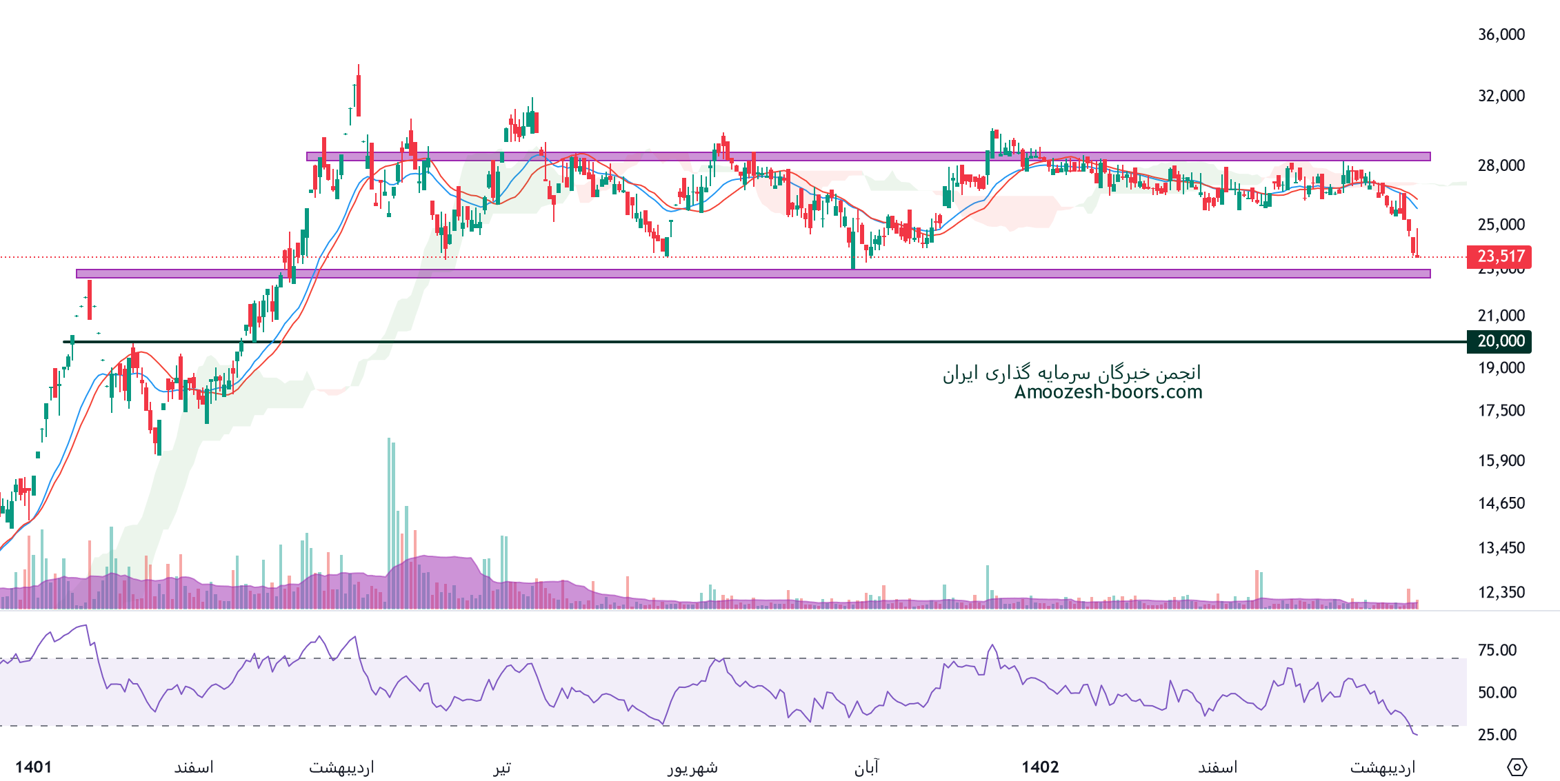 نماد دشیمی که متاثر از جو منفی کل بازار کاماکان در فاز اصلاحی به سر میبرد، در حال حاضر به محدوده حمایتی رسیده، باید منتظر طرز واکنش قیمت به این محدوده حمایتی ماند ( حمایت دشیمی 22500 ریال میباشد )، همچنین در صورت از دست رفتن این حمایت، حمایت بعدی نماد دشیمی 20000 ریال ارزیابی میگردد، در صورت تثبیت قیمت در این محدوده، اولین مقاومت سهم دشیمی محدوده 28000 ریال در نظر گرفته خواهد شد.