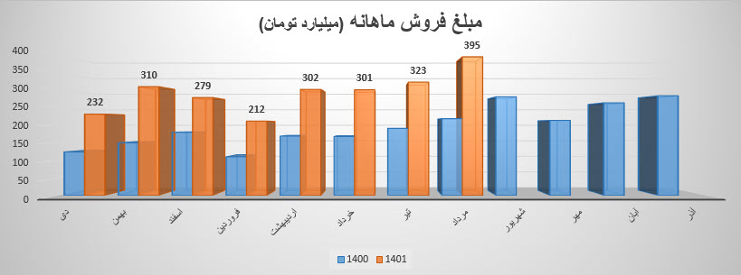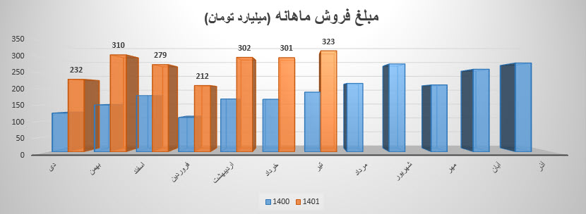 فروش سهم دعبید: 2790 میلیارد تومان که نسبت به دوره مشابه گذشته 75% افزایش یافته است.