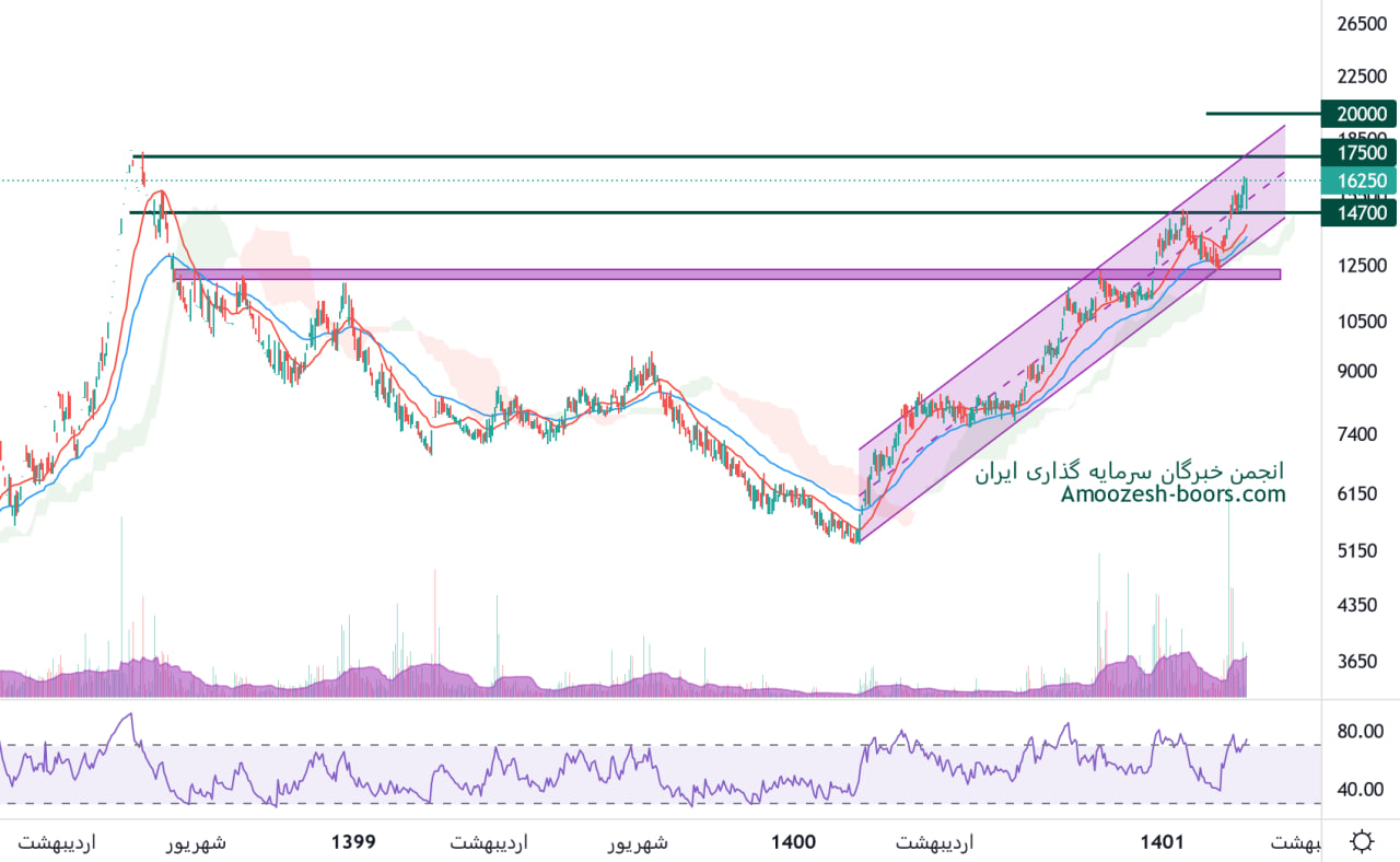 نماد دعبید 14700 ریال را دارا میباشد، در صورت تثبیت قیمت حرکت سهم تا 17500 ریال دور از ذهن نخواهد بود، همچنین در صورت از دست رفتن این محدوده حمایتی، اولین حمایت 12000 ریال ارزیابی خواهد شد.