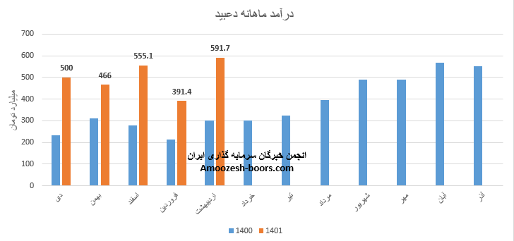 شرکت داروسازی دکتر عبیدی با نماد دعبید در سومین ماه از سال مالی به درآمد 555.1 میلیارد تومانی رسیده است، این رقم در مقایسه با ماه قبل افزایش 19 درصدی و نسبت به متوسط ماهانه افزایش 15 درصدی و نسبت به مدت مشابه نیز افزایش 99 درصدی را تجربه نموده است، عمده درآمد شرکت در اسفند ماه از طریق فروش قرص تامین گردیده که سهم 89 درصدی از فروش ماهانه را به خود اختصاص داده است، هرچند میزان تولید محصول استراتژیک سهم دعبید نسبت به ماه قبلی با کاهش 5 درصدی همراه بوده اما مقدار فروش این محصولات افزایش 21 درصدی داشته است و نرخ فروش آن نیز بدون تغییر خاصی گزارش گردیده است، مجموع درآمد 3 ماهه سهم دعبید نسبت به مدت مشابه افزایش 85 درصدی داشته، و طی این مدت 34% از کل درامد سال گذشته را محقق نموده است.