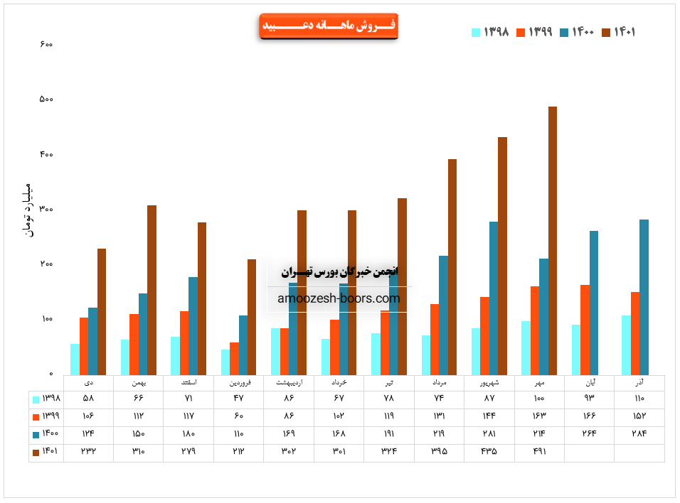 فروش سهم دعبید: 4500 میلیارد تومان که نسبت به دوره مشابه گذشته 85% افزایش یافته است.