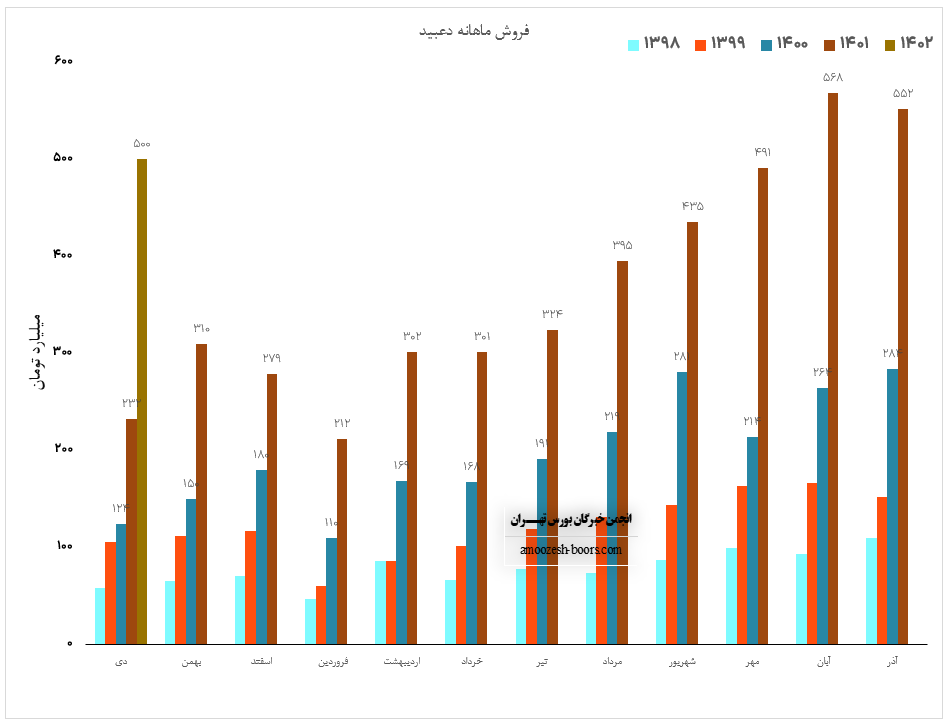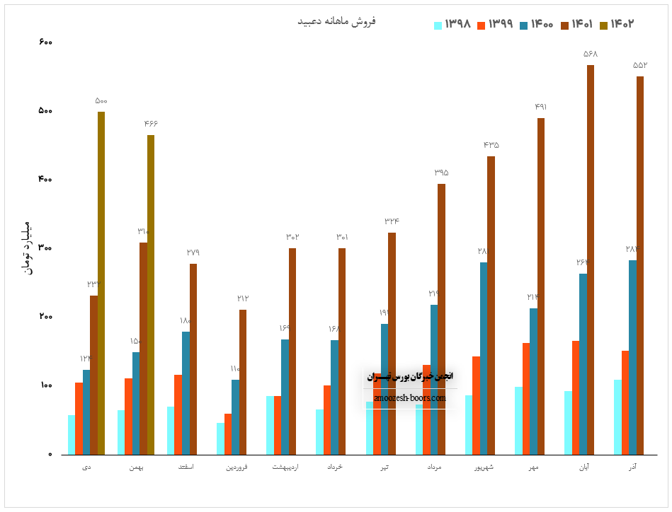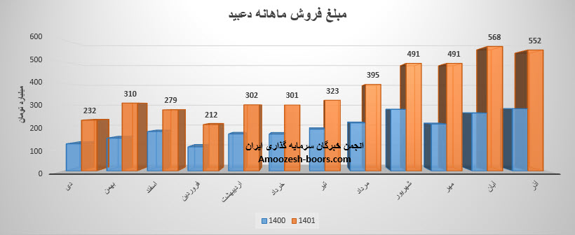همچنین سهم دعبید با ثبت فروش 4500 میلیارد تومانی در پایان سال مالی منتهی به دی ماه 1401 خود توانست حدود 24% بیشتر از فروش سالانه خود را محقق سازد.
