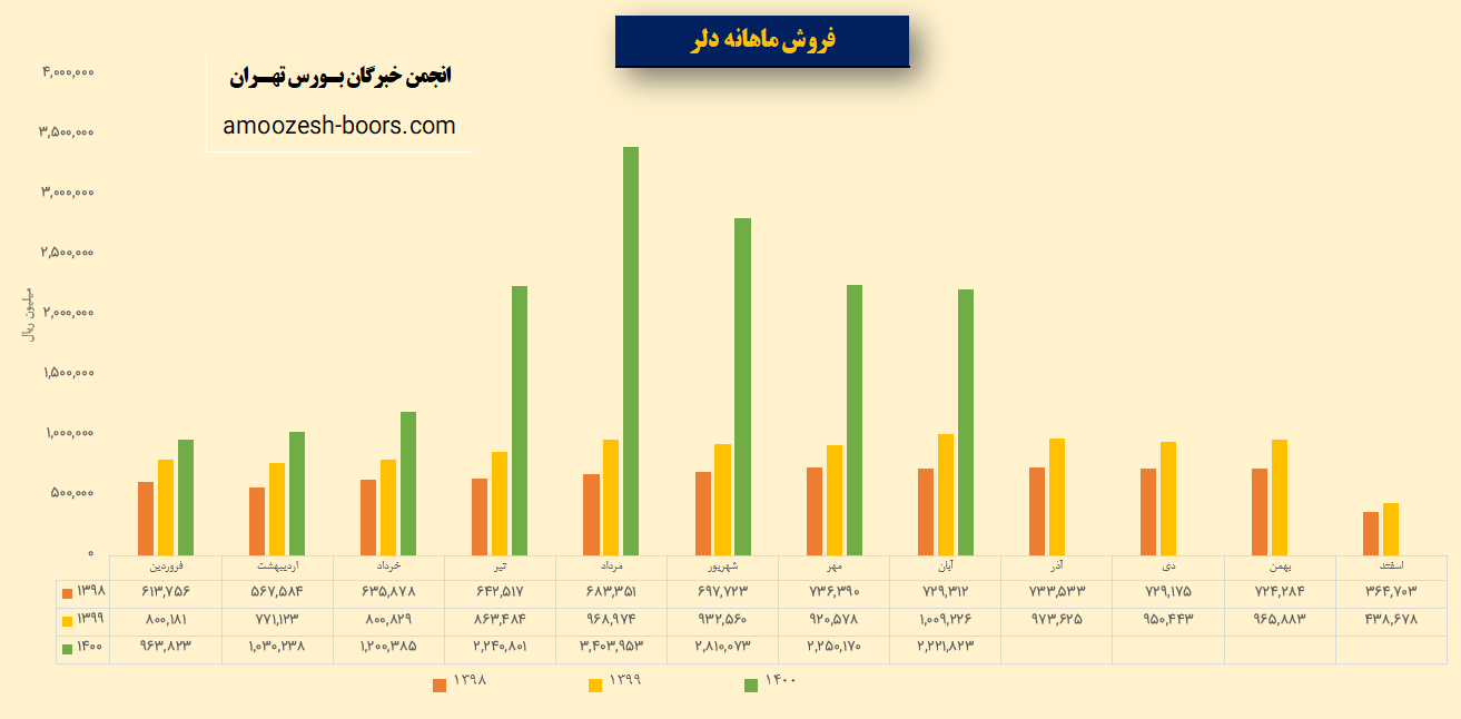 درآمد سهم دلردر این دوره نسبت به ماه قبل 20% کاهش و نسبت به میانگین ماه های قبل 16% افزایش و نسبت به دوره 1 ماهه مشابه سال قبل 148% افزایش درآمد داشته است.